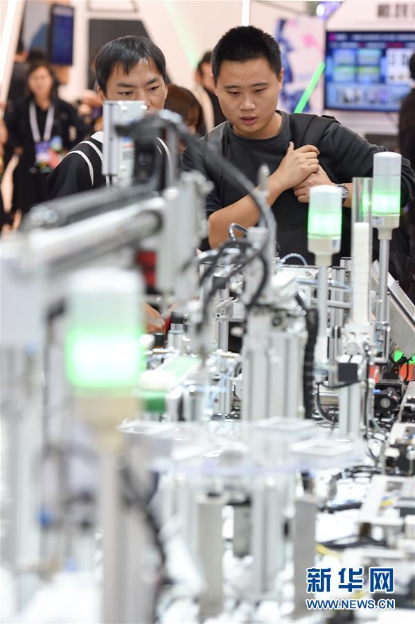 10月11日,觀眾在博覽會(huì)現(xiàn)場觀看模塊化自動(dòng)生產(chǎn)線。 當(dāng)日,2018世界智能制造大會(huì)·智領(lǐng)全球博覽會(huì)在南京國際博覽中心開展。本次博覽會(huì)以“賦能升級(jí),智造未來”為主題,總展示面積約5萬平方米,共有1900多家國內(nèi)外企業(yè)參會(huì)參展。博覽會(huì)將展示國內(nèi)外智能制造領(lǐng)域的最新技術(shù)和頂尖產(chǎn)品,發(fā)布國內(nèi)智能制造示范企業(yè)的最新發(fā)展成果,同時(shí)分享智能制造實(shí)際應(yīng)用方面最前沿的解決方案。 新華社記者李博攝