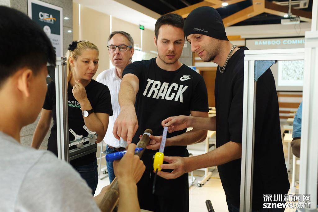 本次工作坊屬于綠色智造創(chuàng)客工坊的一部分,吸引了來(lái)自不同國(guó)家的大約20名學(xué)員參與,學(xué)員先通過(guò)挑選三根大的竹子和四根小的竹子來(lái)做單車(chē)的前三角和后三角,之后用機(jī)器打磨讓竹子變成合適的大小,之后進(jìn)行組裝,最后變成一輛竹子單車(chē)。