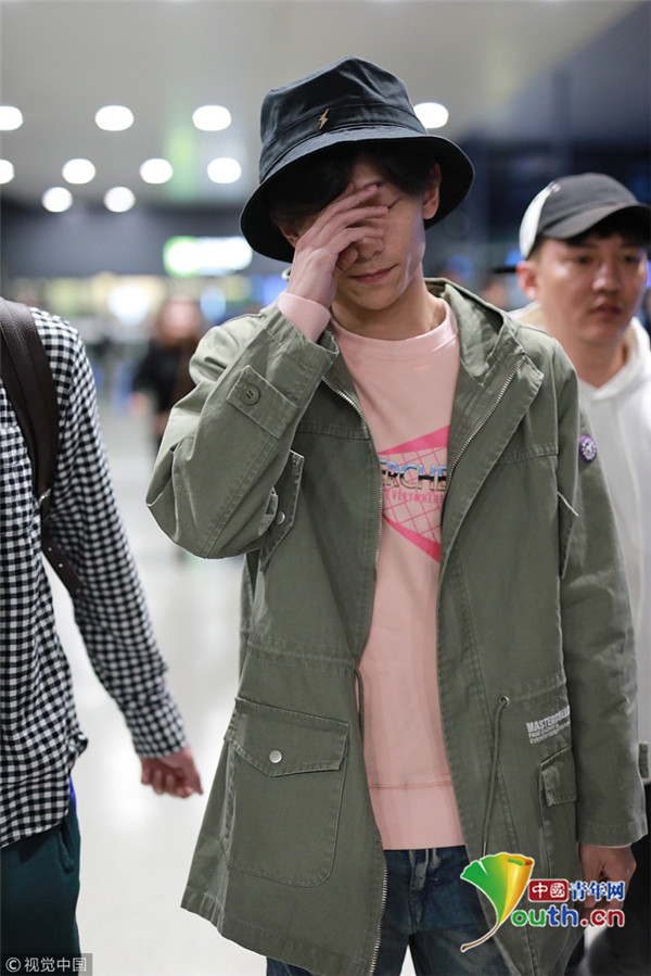 2018年10月14日,上海,張一山抵達(dá)上海機(jī)場(chǎng)。張一山戴漁夫帽眼袋嚴(yán)重瞬間老十歲, 用手擋臉?biāo)撇辉干乡R。