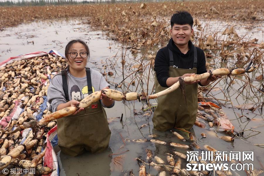 藕農(nóng)泥中“掘金” 初秋時節(jié)采藕忙