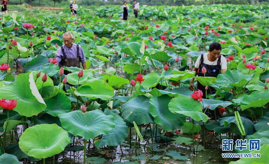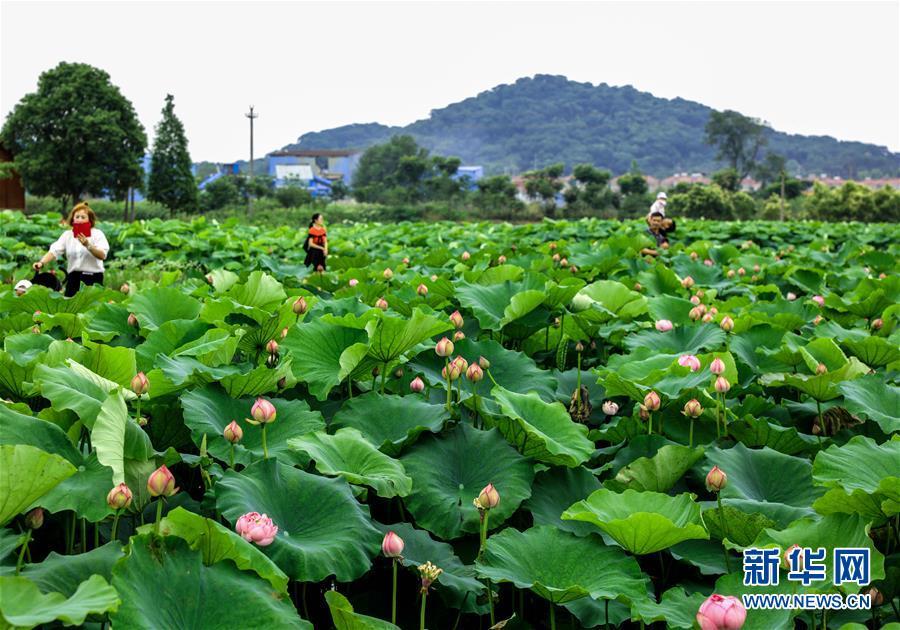 6月3日,荷農(nóng)們將觀賞性荷花裝盆準(zhǔn)備銷售。 進入初夏時節(jié),浙江省湖州市長興縣呂山鄉(xiāng)圣蓮苑荷花基地內(nèi)200多畝30多種各色荷花競相開放,該基地也迎來了荷花銷售和旅游觀光的旺季。據(jù)介紹,呂山鄉(xiāng)是浙江省長興縣當(dāng)?shù)貍鹘y(tǒng)的蓮藕產(chǎn)區(qū),近年來開始逐步升級打造“荷花之鄉(xiāng)”。不同于傳統(tǒng)的種荷收藕的思路,當(dāng)?shù)亟柚吧鷳B(tài)+創(chuàng)意”的理念種植、銷售觀賞盆栽荷花,一畝觀賞性荷花的產(chǎn)值可達(dá)到8萬元,比普通種植蓮藕增收超過20倍,同時也推動了鄉(xiāng)村旅游經(jīng)濟,帶動荷農(nóng)收入增長,助力鄉(xiāng)村振興。新華社記者徐昱 攝