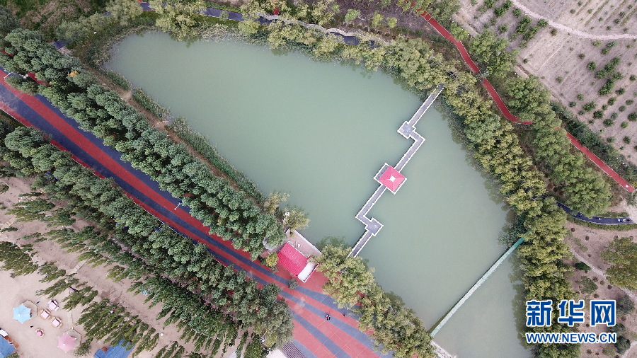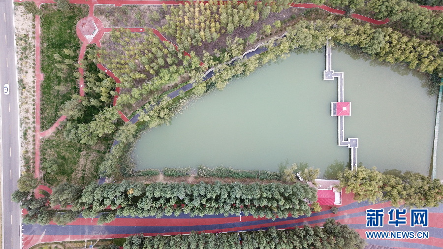 恩格貝生態(tài)示范區(qū)位于庫(kù)布齊沙漠中段,總面積200平方公里。這里曾經(jīng)風(fēng)沙肆虐,恩格貝生態(tài)示范區(qū)建設(shè)者經(jīng)過(guò)長(zhǎng)期艱苦奮斗,用雙手和鐵鍬“種”出一片人造沙漠綠洲,在沙漠里打造了一顆璀璨的生態(tài)明珠,如今這里是國(guó)家生態(tài)旅游示范區(qū)和國(guó)家4A級(jí)景區(qū)。月亮湖位于恩格貝生態(tài)示范區(qū)核心區(qū)域,周?chē)痪G色植被環(huán)繞,在無(wú)人機(jī)航拍視角下,猶如鑲嵌在沙漠綠洲里的一塊碧玉,呈現(xiàn)出大自然的和諧之美。(新華網(wǎng) 王宇 攝)