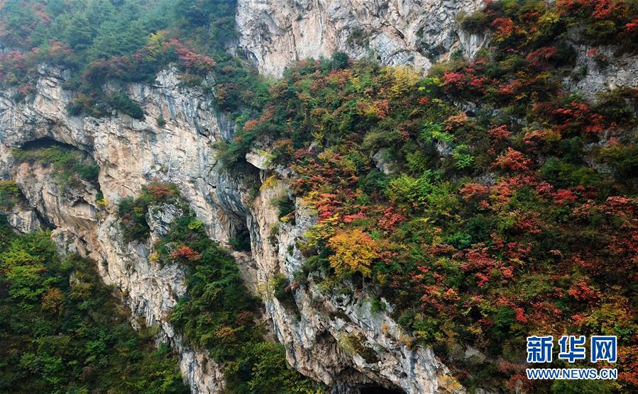這是西狹頌景區(qū)秋景(10月16日無(wú)人機(jī)拍攝)。  新華社記者 陳斌 攝