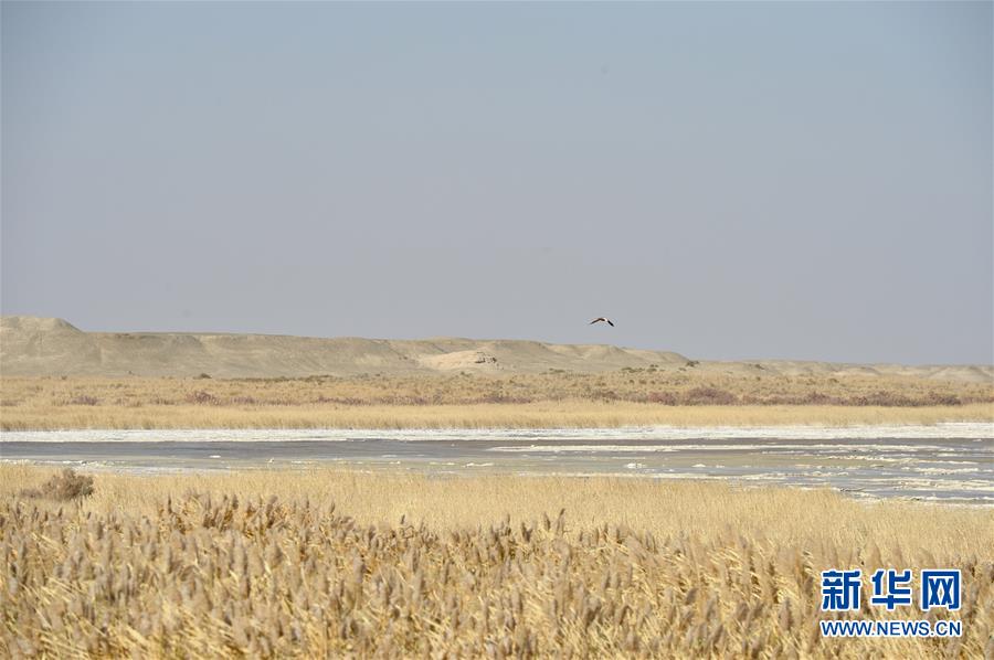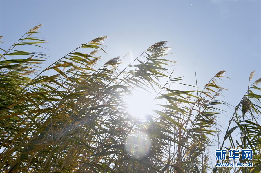 這是10月16日在敦煌西湖國家級(jí)自然保護(hù)區(qū)拍攝的蘆葦。  新華社記者 李笑 攝