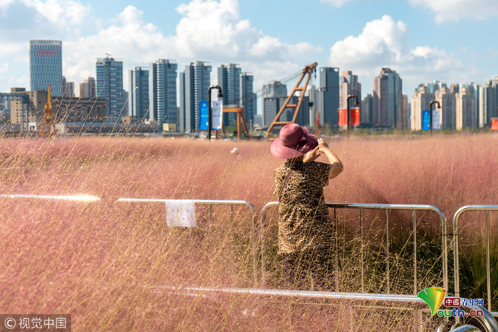 上海楊浦濱江粉黛亂子草成片盛開 美不勝收