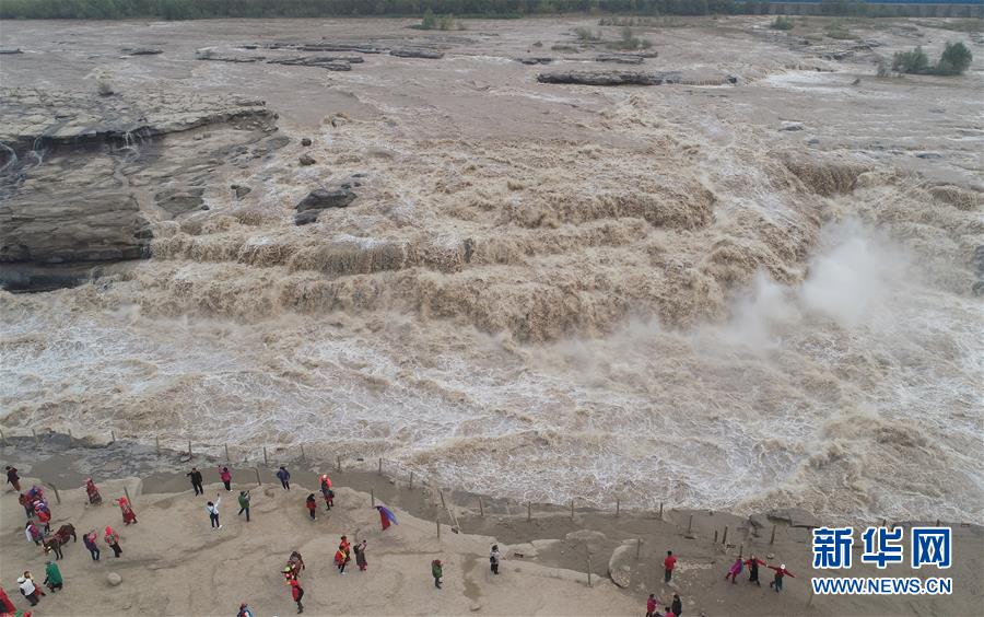 7月19日,游客在陜西境內(nèi)的壺口瀑布群前留影。 新華社記者陶明 攝