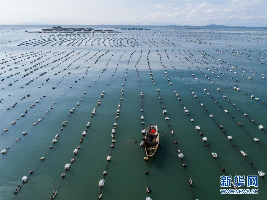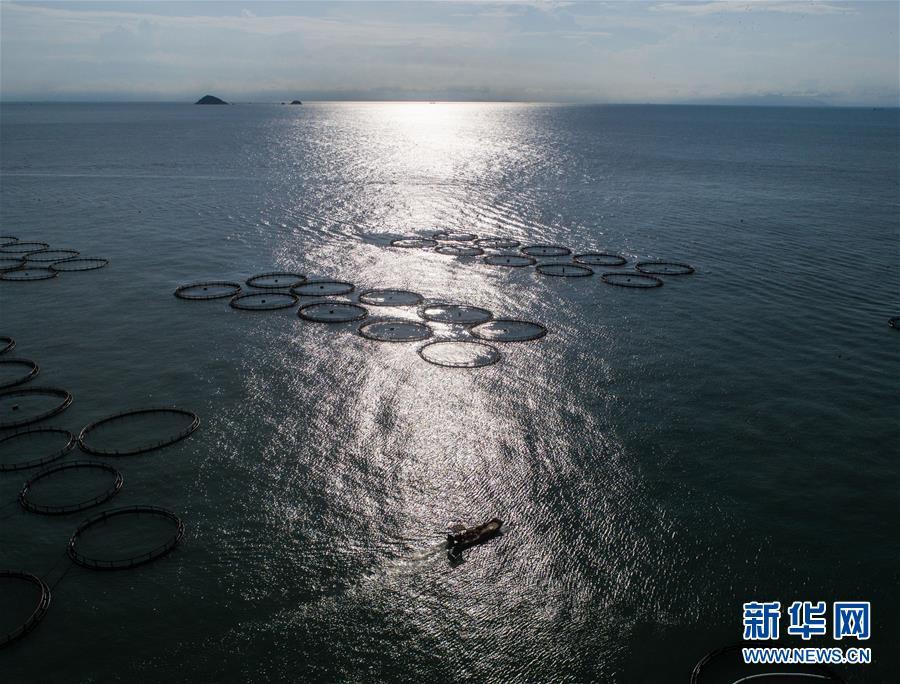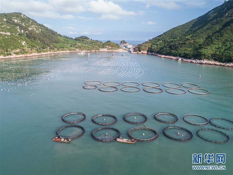 8月19日,空中俯瞰南麂島海域內(nèi)的“海上牧場”養(yǎng)殖區(qū)(無人機(jī)拍攝)。進(jìn)入8月,浙江省溫州市平陽縣南麂鎮(zhèn)海域上大片的大黃魚、貽貝等特色海產(chǎn)品養(yǎng)殖區(qū)域迎來豐收季節(jié),養(yǎng)殖戶們駕駛漁船在養(yǎng)殖區(qū)海域進(jìn)行打撈收獲,在碧海藍(lán)天下構(gòu)成了一幅“海上牧場”的美麗豐收景象。近年來,南麂鎮(zhèn)政府引導(dǎo)漁民養(yǎng)殖戶充分發(fā)揮“靠海吃海”的資源優(yōu)勢,大力發(fā)展海洋養(yǎng)殖經(jīng)濟(jì)和海島旅游經(jīng)濟(jì),實(shí)現(xiàn)了南麂由“生態(tài)美”向“產(chǎn)業(yè)美”,“產(chǎn)業(yè)美”向“經(jīng)濟(jì)美”的轉(zhuǎn)變。同時(shí)該鎮(zhèn)堅(jiān)持以大黃魚、貽貝等為特色產(chǎn)業(yè)支撐,精準(zhǔn)發(fā)展高效海洋養(yǎng)殖業(yè),重點(diǎn)培養(yǎng)一批新型職業(yè)漁民,依靠專業(yè)技術(shù)支持,實(shí)現(xiàn)深海仿生養(yǎng)殖,讓好生態(tài)造就好品質(zhì),重點(diǎn)打造南麂養(yǎng)殖品牌,組建營銷網(wǎng)絡(luò),拓展特色海產(chǎn)品市場。新華社記者 徐昱攝