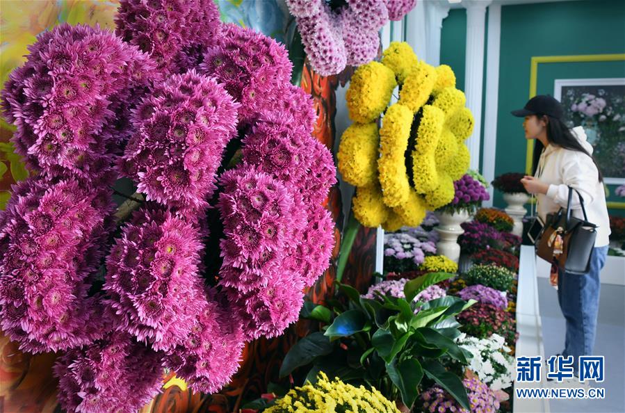 10月17日,游客在開(kāi)封清明上河園觀賞菊花。重陽(yáng)時(shí)節(jié),各色菊花競(jìng)相綻放,把古都開(kāi)封裝點(diǎn)得分外秀美,吸引眾多游客前來(lái)觀賞游玩。 新華社記者 李安 攝
