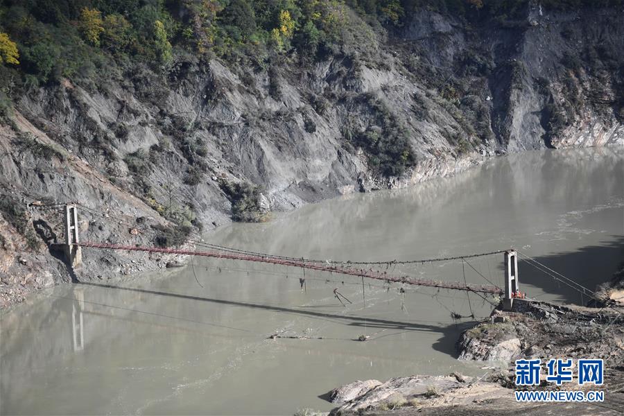 10月20日,西藏雅魯藏布江米林縣堰塞湖自然過(guò)流后,通往加拉村的大橋完全浮出江面。 10月19日13時(shí)30分,西藏雅魯藏布江米林縣堰塞湖開始自然過(guò)流。記者從應(yīng)急管理部牽頭的聯(lián)合工作組獲悉,截至20日7時(shí),雅魯藏布江堰塞湖壩前水位已下降56米,估算留存水量1.6億立方米,堰塞湖洪水威脅得到緩解,防洪安全風(fēng)險(xiǎn)大大減輕,并將繼續(xù)降低。 10月20日,記者乘坐直升機(jī)從空中拍攝了雅魯藏布江堰塞湖自然過(guò)流的畫面。 新華社記者普布扎西攝