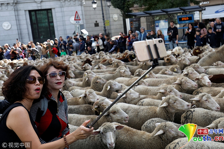 成百上千只綿羊穿越馬德里市街,展示古老的游牧習(xí)俗。