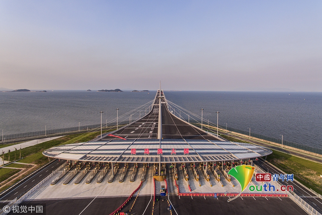 2018年5月23日,廣東珠海,珠澳口岸人工島上的港珠澳大橋收費(fèi)站。