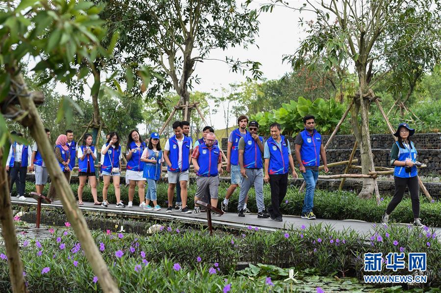 在??谑忻郎岷峪P翔濕地公園,參加濕地保護(hù)志愿服務(wù)講解員培訓(xùn)的留學(xué)生志愿者一邊參觀一邊聽(tīng)中國(guó)志愿者講解(10月21日攝)。 ??谑续P翔濕地公園內(nèi)流水潺潺,綠草如茵。很難想象,這個(gè)市民游客休閑散步的好去處、具有強(qiáng)大污水凈化功能的濕地公園,兩年前還是臭氣熏天、人們避之不及的垃圾堆填場(chǎng)。 把生態(tài)文明建設(shè)放到更加突出的位置,近兩年來(lái)??谑幸詽竦爻鞘薪ㄔO(shè)為突破口,不斷創(chuàng)新城市生態(tài)治理,著力改善生態(tài)民生,在生態(tài)文明建設(shè)上闖關(guān)探路。 新華社記者 楊冠宇 攝