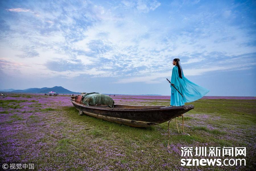 鄱陽湖蓼子花海美景醉游人