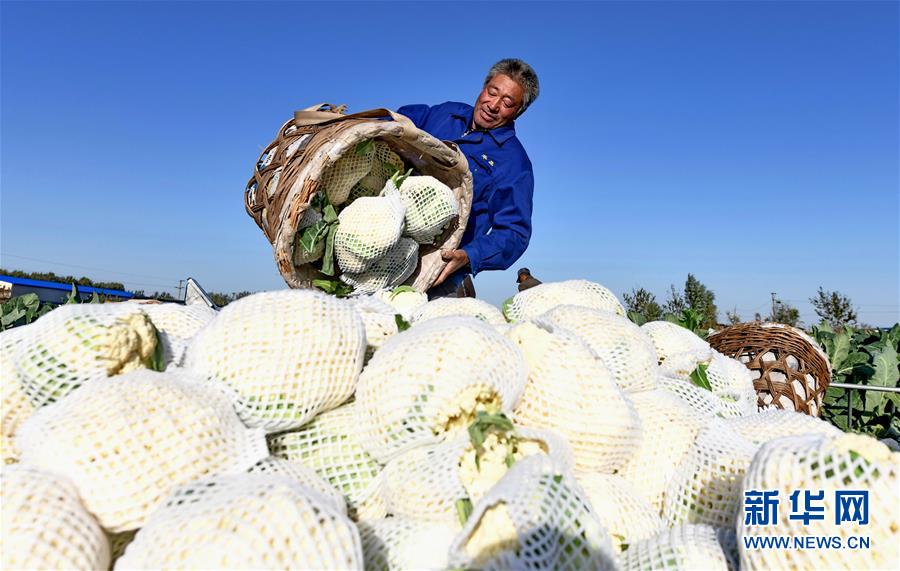 10月29日,樂亭縣馬頭營鎮(zhèn)馬頭營村的農(nóng)民將收獲的菜花裝車。 新華社記者楊世堯攝