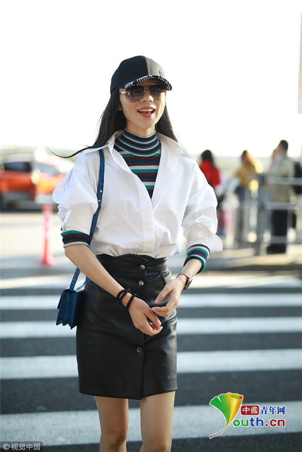 韓雪襯衫短裙清新養(yǎng)眼 帥氣邁步自提行李親和力足