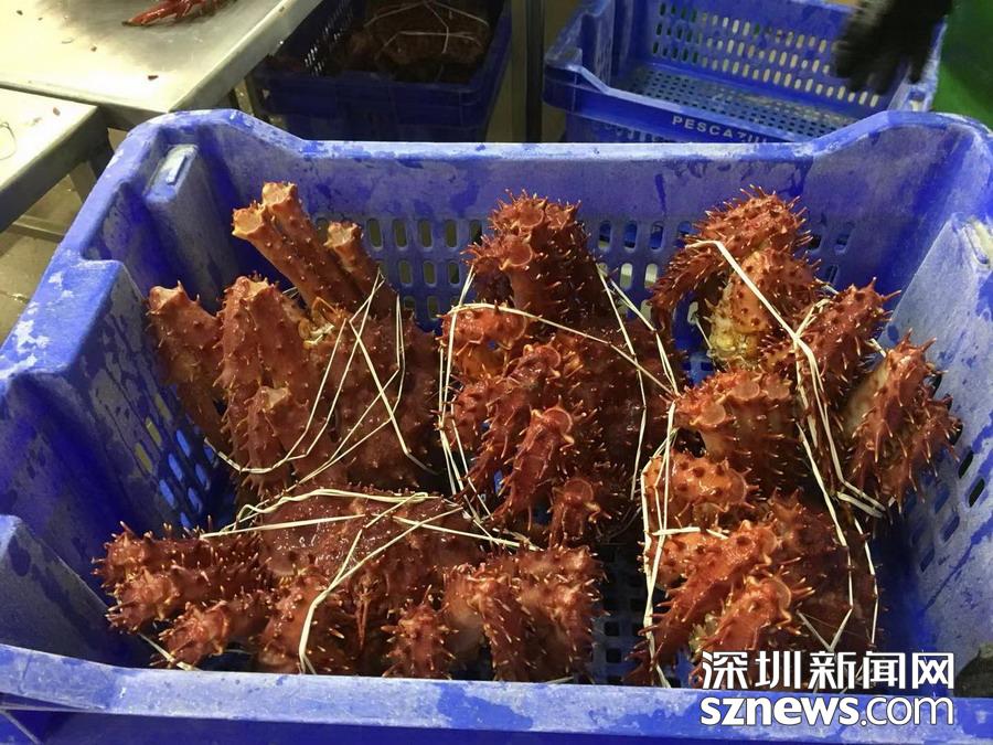 深圳新聞網(wǎng)訊   蜘蛛蟹(又名皇帝蟹)只產(chǎn)于南北兩極冰冷的海洋中,因?yàn)榘藯l腿特長(zhǎng),外觀形似蜘蛛,而且觸角也比普通螃蟹多,所以被稱為蜘蛛蟹,大個(gè)的重量可達(dá)5公斤以上。智利政府規(guī)定,小于1.5公斤的不許捕撈。