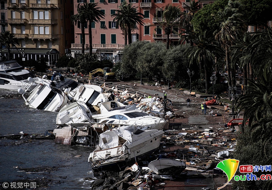 當(dāng)?shù)貢r間2018年10月30日,意大利拉帕羅,暴風(fēng)雨襲擊當(dāng)?shù)馗劭冢⒋輾Я舜髩蔚囊徊糠?。?jù)外媒消息,當(dāng)?shù)貢r間10月27日,意大利迎來了新一輪大風(fēng)降雨天氣。截止到29日,惡劣天氣造成了至少10人死亡,意大利民防局向各地區(qū)發(fā)布了橙色、黃色和紅色預(yù)警。