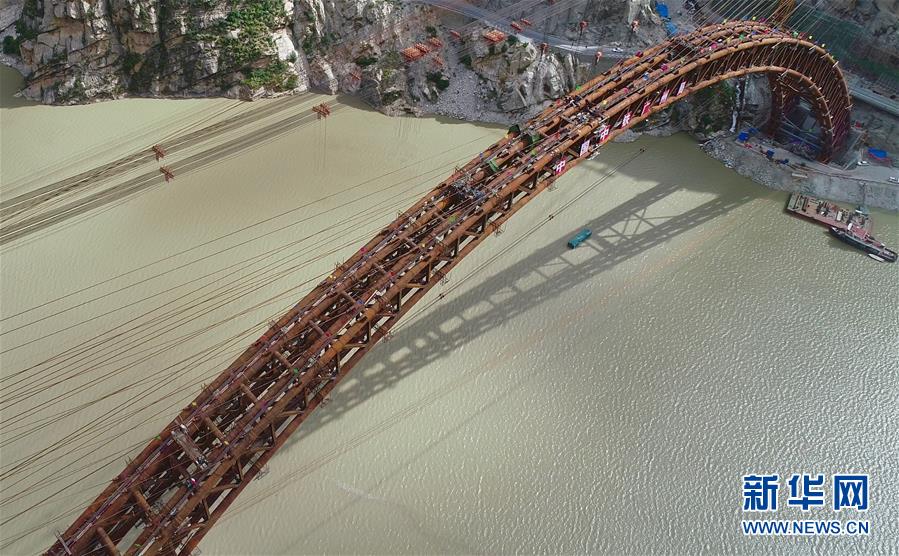 9月28日無人機(jī)拍攝的川藏鐵路拉林段重點(diǎn)標(biāo)志性工程藏木特大橋。 當(dāng)日,隨著最后一節(jié)鋼管拱的對(duì)位和鎖定完畢,川藏鐵路拉林段藏木特大橋成功合龍,標(biāo)志著大橋主體結(jié)構(gòu)施工取得了關(guān)鍵性勝利。藏木特大橋由中國中鐵廣州局集團(tuán)承建,拱高112米,橋橫跨雅魯藏布江峽谷,水深66米。 新華社記者普布扎西攝