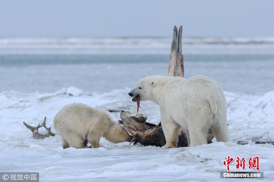 11月1日訊(具體拍攝時(shí)間不詳),美國阿拉斯加州,一只北極熊媽媽帶著幼崽們外出覓食,發(fā)現(xiàn)了一節(jié)長(zhǎng)4.5米的北極露脊鯨骸骨。75噸重的鯨魚對(duì)因紐皮亞特人來說是神圣的,他們每年要吃三次鯨魚,把骨頭放在指定的地方,讓北極熊吃完粘在骨頭上的碎肉。攝影師Eiji Itoyama為拍攝此照片在位于北冰洋邊緣的阿拉斯加卡克托維克村停留了5天。圖片來源:視覺中國