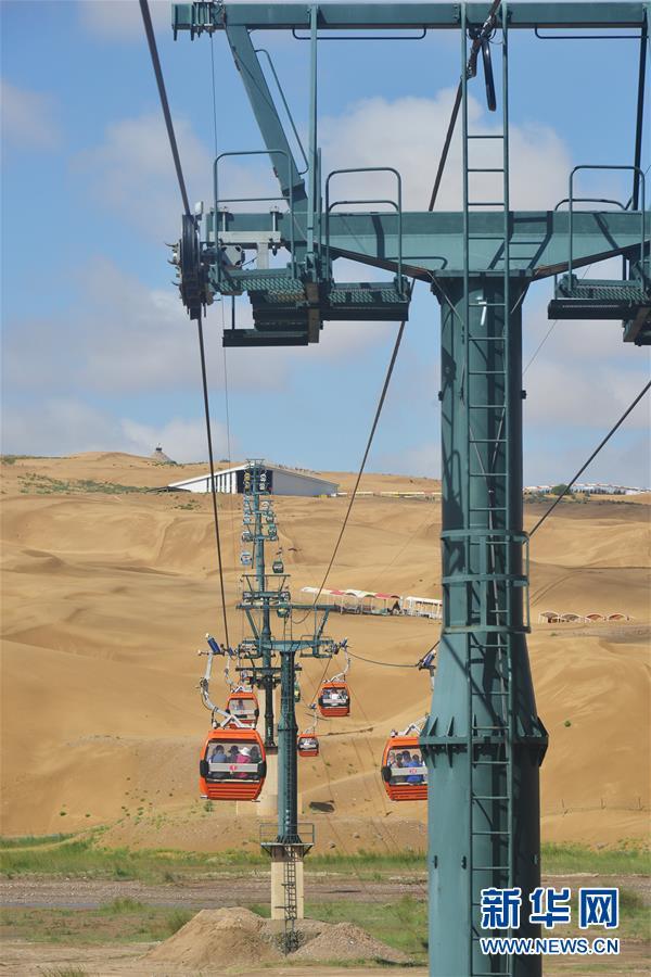 游客在庫布其沙漠中的內(nèi)蒙古鄂爾多斯市達(dá)拉特旗響沙灣景區(qū)的沙地上蕩秋千(7月31日攝)。依托庫布其沙漠特有的自然風(fēng)光和多年生態(tài)建設(shè)的成果,當(dāng)?shù)亟ǔ身懮碁?、七星湖、恩格貝等生態(tài)旅游景區(qū)。近十年來,鄂爾多斯市生態(tài)旅游景區(qū)累計(jì)接待游客近1000萬人次,實(shí)現(xiàn)收入24.6億元。