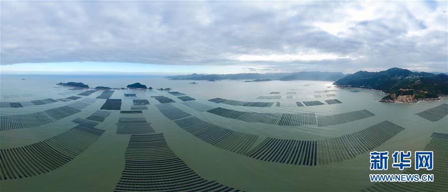 這是11月4日無人機(jī)拍攝的霞浦縣長(zhǎng)春鎮(zhèn)的紫菜種植區(qū)(拼接照片)。 近日,福建省霞浦縣沿海6萬畝紫菜迎來收獲季節(jié),漁民們出海收獲紫菜,海上田園一派繁忙豐收景象。 新華社記者 姜克紅 攝