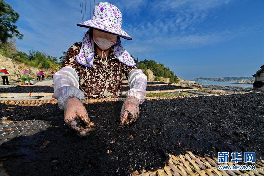 10月24日,福建莆田蔣山村村民在收獲紫菜。 新華社記者姜克紅 攝