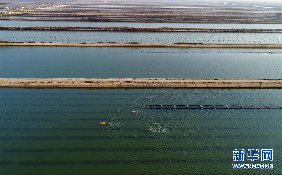10月22日,樂亭縣姜各莊鎮(zhèn)二節(jié)村海參養(yǎng)殖基地的工人在捕撈海參(無(wú)人機(jī)拍攝)。 時(shí)下,正值渤海灣地區(qū)海參收獲時(shí)節(jié),河北省樂亭縣的海參養(yǎng)殖戶忙著捕撈海參,供應(yīng)各地市場(chǎng)。據(jù)介紹,該縣海域水質(zhì)優(yōu)良、氣候適宜,是海參養(yǎng)殖的理想場(chǎng)地,目前發(fā)展池塘造礁養(yǎng)殖海參面積6萬(wàn)畝,年產(chǎn)鮮活海參6000多噸,年產(chǎn)值2億多元。  新華社記者 楊世堯 攝