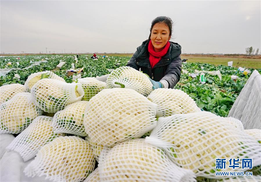 11月5日,唐山海港經(jīng)濟(jì)開發(fā)區(qū)王灘鎮(zhèn)東高各莊村的菜農(nóng)將收獲的菜花裝車。 新華社記者 楊世堯 攝