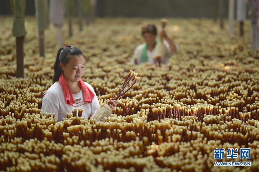 8月22日,河北省沙河市蟬房鄉(xiāng)水磨頭村農(nóng)民在管理種植的靈芝。 近年來(lái),河北省沙河市蟬房鄉(xiāng)水磨頭村采取“合作社+基地+農(nóng)戶(hù)”的經(jīng)營(yíng)模式,大力發(fā)展特色靈芝種植,開(kāi)辟出農(nóng)民創(chuàng)收新路徑。目前,水磨頭村已種植各類(lèi)靈芝8萬(wàn)多株,產(chǎn)品銷(xiāo)往北京、天津、山東等地,帶動(dòng)100余名農(nóng)民人均年增收超5000元。 新華社記者 牟宇 攝