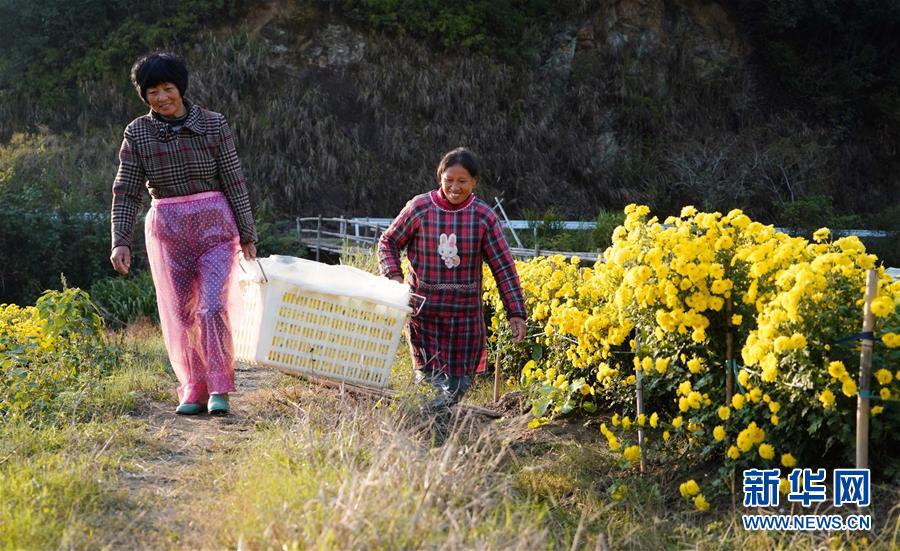 11月8日,婺源縣思口鎮(zhèn)農(nóng)戶在采摘皇菊。 新華社記者 胡晨歡 攝