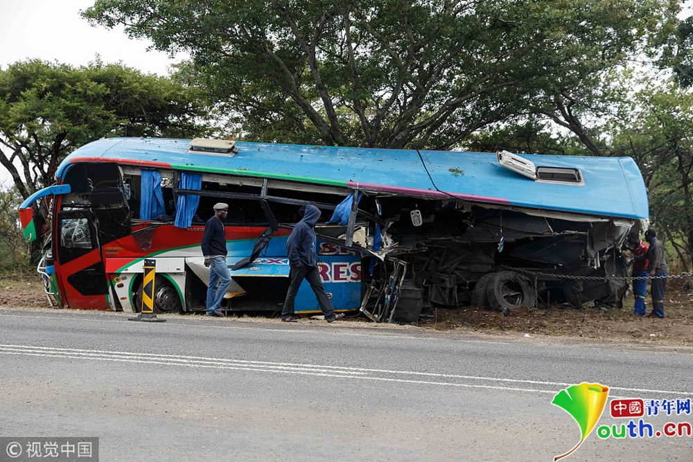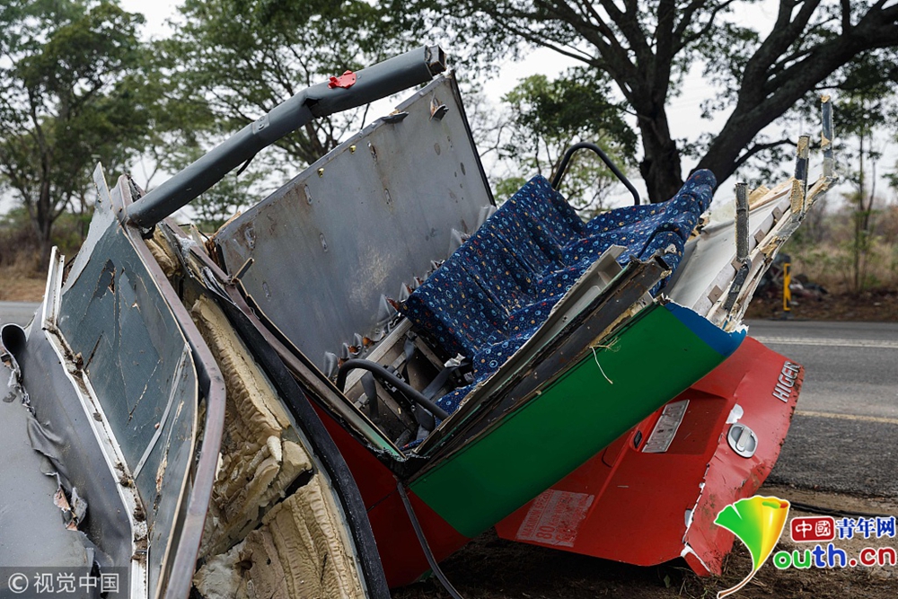 當(dāng)?shù)貢r(shí)間2018年11月8日,津巴布韋魯薩佩,津巴布韋警方7日表示,該國東部當(dāng)天傍晚發(fā)生一起兩輛大巴相撞事故,造成至少47人死亡。事故發(fā)生在東部馬尼卡蘭省魯薩佩地區(qū),兩輛載有乘客的大巴迎面相撞,造成至少47人死亡,死者中包括45名成人和2名兒童。