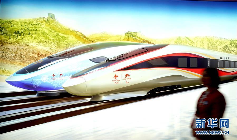 11月8日,一位志愿者從進(jìn)博會(huì)中國(guó)館一幅高鐵概念圖前走過(guò)。 新華社記者 陳建力 攝