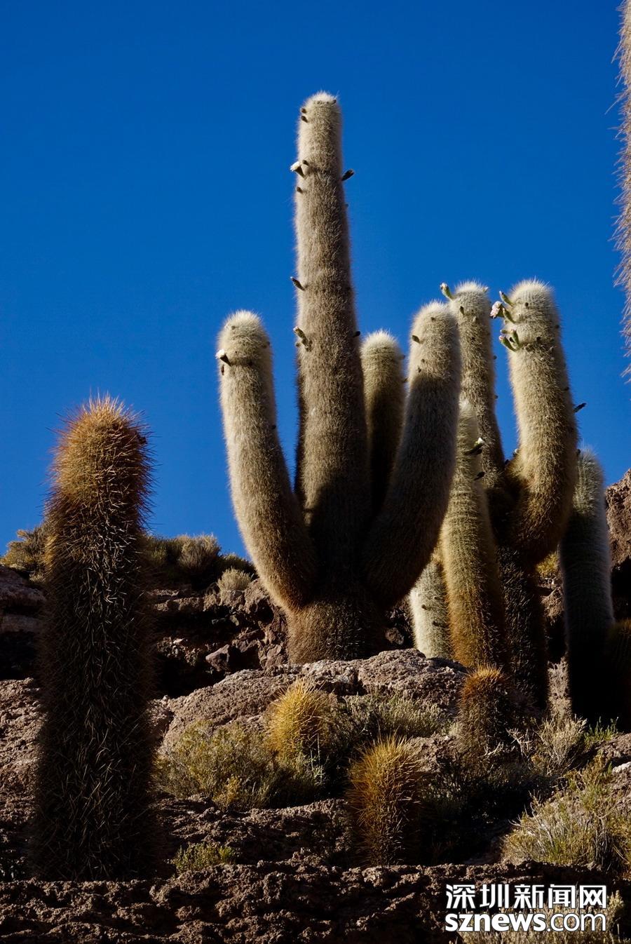 深圳新聞網(wǎng)訊 烏尤尼鹽沼中,有一個(gè)孤立的小山頭,猶如瀚海中的小島。島上長(zhǎng)滿巨大的仙人柱,據(jù)說(shuō)有的已經(jīng)生長(zhǎng)了上千年。這種形狀各異、耐鹽堿、耐干旱的熱帶植物豐富了鹽沼的風(fēng)光,構(gòu)成絕無(wú)僅有的世界奇觀。 李仁奇 攝