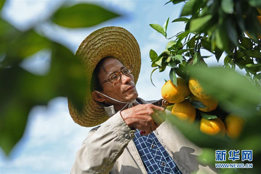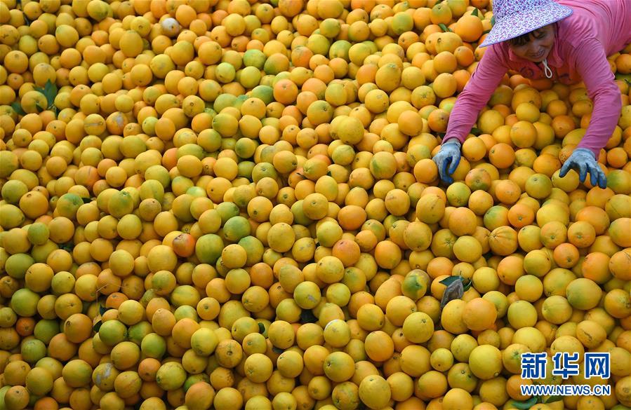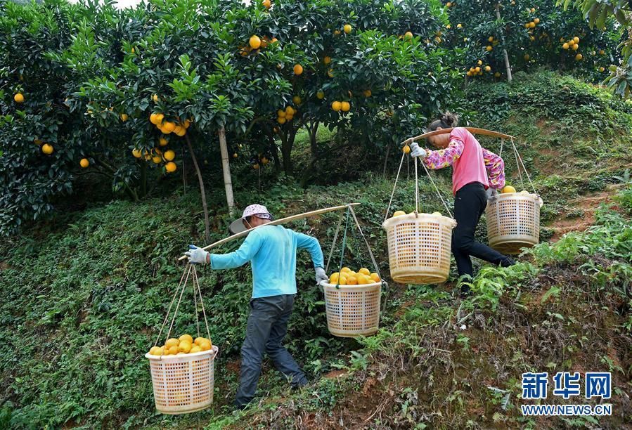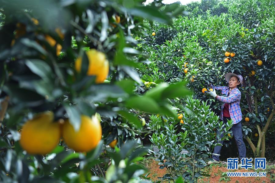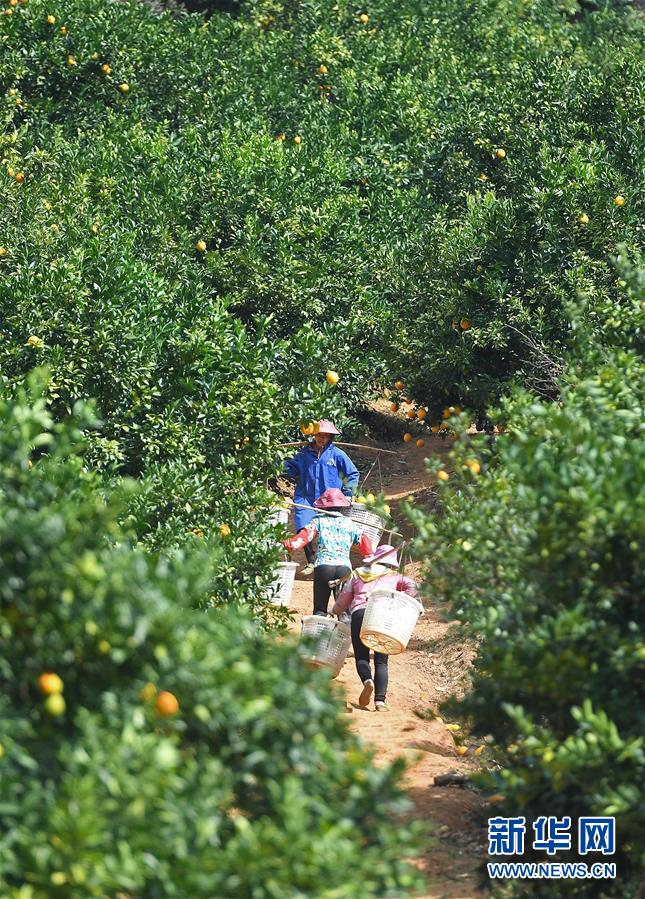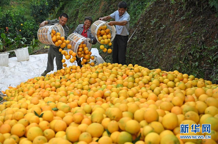 近日,江西省贛州市尋烏縣近20萬畝果園進入豐收采摘期,當?shù)毓r(nóng)抓住晴好天氣開始采摘臍橙,果園一派繁忙景象。新華社記者 萬象 攝