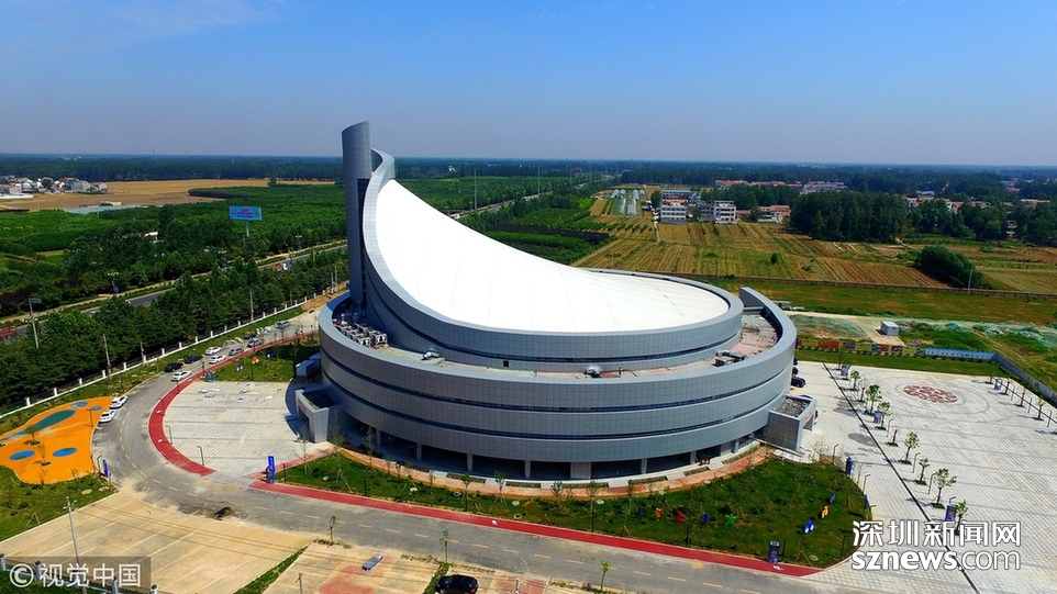2018年6月13日,航拍河南淮陽(yáng)一座即將竣工落成的體育場(chǎng)館建筑,市民稱酷似一個(gè)石磨盤。