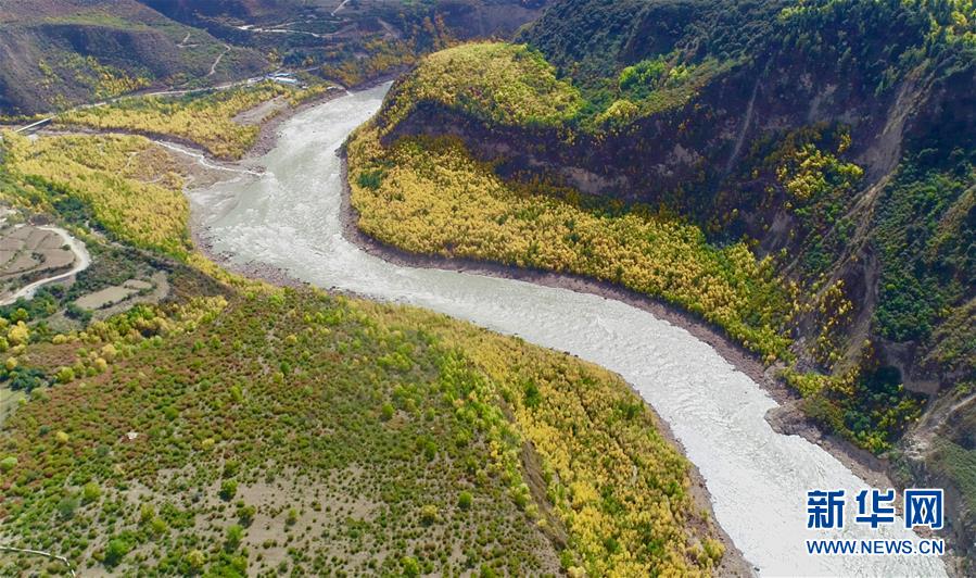 這是10月21日在西藏米林縣派鎮(zhèn)達林村拍攝的雅魯藏布江(無人機拍攝)。