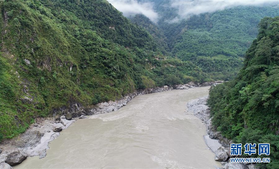 洪峰過(guò)境后的西藏雅魯藏布江墨脫段局部畫(huà)面(10月20日無(wú)人機(jī)拍攝)。  新華社記者劉東君攝