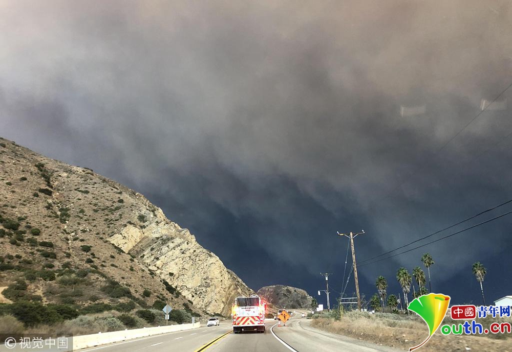 圖為文圖拉郡內(nèi)山火引發(fā)的濃煙。