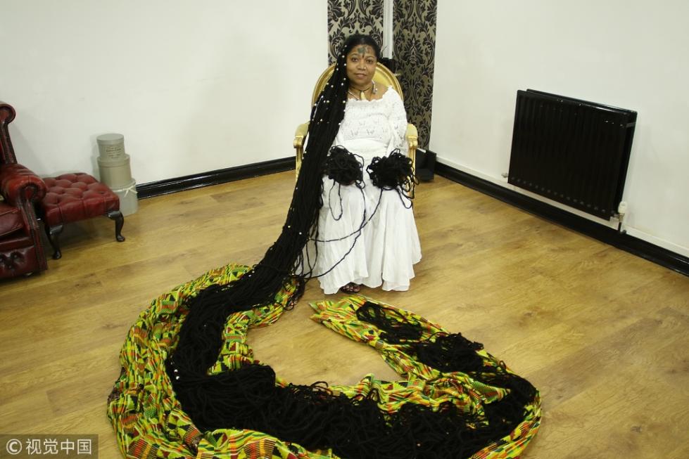 當(dāng)?shù)貢r(shí)間2018年9月14日,英國(guó)韋靈伯勒,正在英國(guó)旅行的Asha Mandela來自美國(guó)佛羅里達(dá)州,是世界上頭發(fā)最長(zhǎng)的女人。