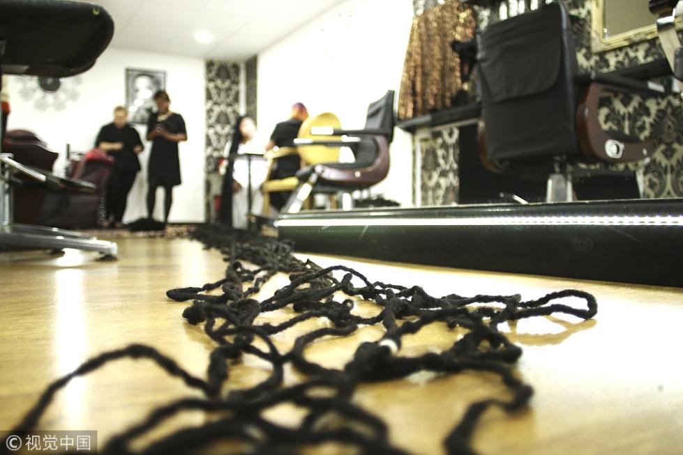 當(dāng)?shù)貢r(shí)間2018年9月14日,英國(guó)韋靈伯勒,正在英國(guó)旅行的Asha Mandela來自美國(guó)佛羅里達(dá)州,是世界上頭發(fā)最長(zhǎng)的女人。她的頭發(fā)現(xiàn)在長(zhǎng)約34米(110英尺),超過三輛雙層巴士的長(zhǎng)度。Asha Mandela十年前打破了世界吉尼斯頭發(fā)最長(zhǎng)的紀(jì)錄。