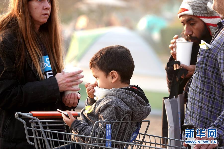 11月18日,在美國加利福尼亞州比尤特縣奇科,災(zāi)民在沃爾瑪停車場暫居。 新華社記者吳曉凌攝