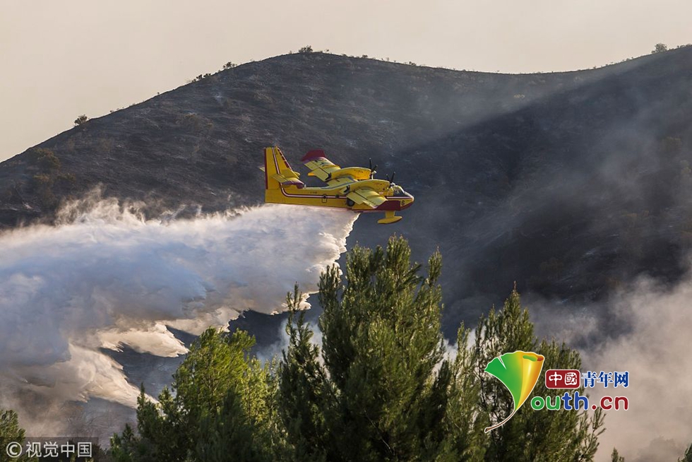 山火持續(xù)肆虐 飛機(jī)出動滅火。