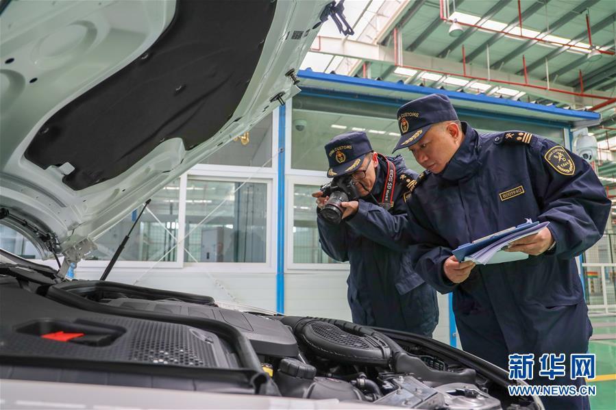 11月19日,重慶海關(guān)的工作人員在口岸車檢中心對首趟中歐班列商品車專用車運(yùn)輸國際班列運(yùn)輸?shù)倪M(jìn)口整車進(jìn)行查驗(yàn)。
