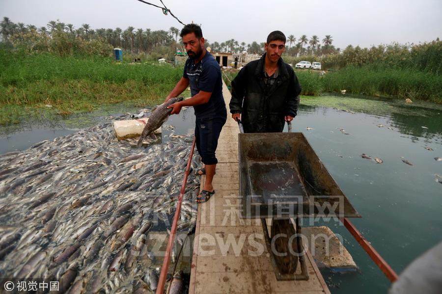 伊拉克河流一夜之間漂浮數(shù)萬死魚 密密麻麻擠滿河道