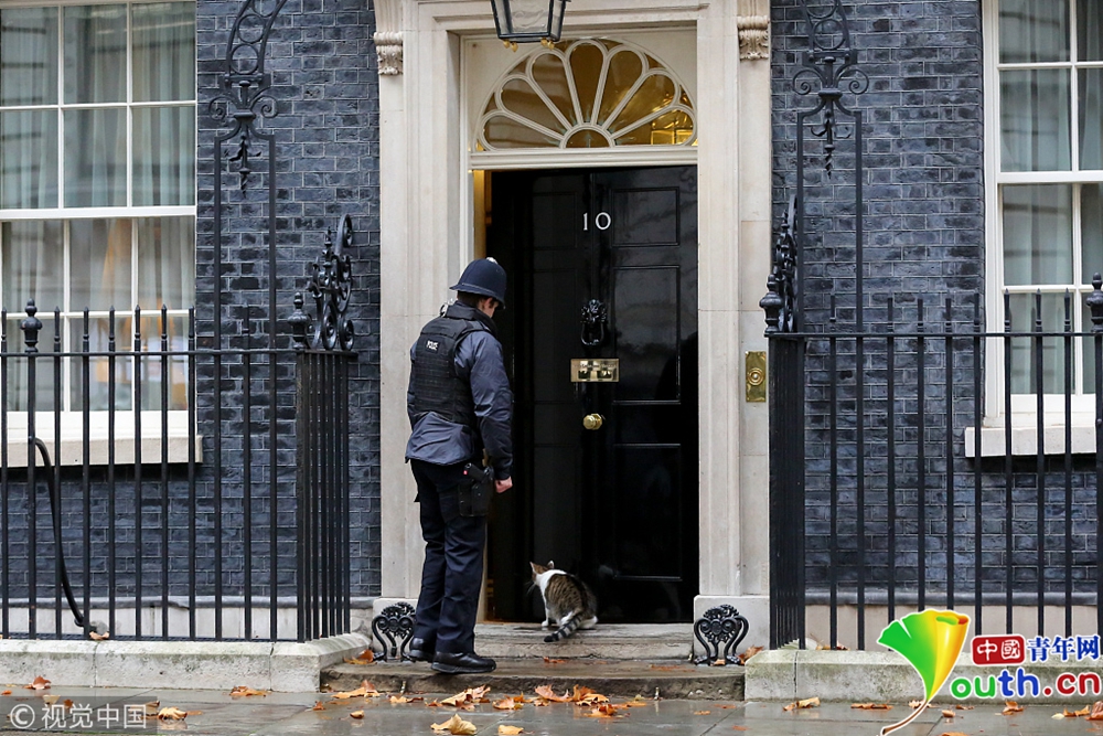 后者顯然立馬接收到了“首席貓”的眼神示意,他快速走上前來,替拉里敲開門,助它重返溫暖的室內。