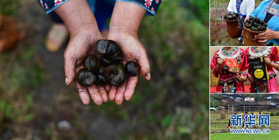 拼版照片:左圖為在拱洞鄉(xiāng)龍令村,貧困戶龍亞手捧剛剛收獲的田螺(11月17日攝);右上圖為龍亞展示收獲的田螺(11月17日攝);右中圖為龍令村養(yǎng)殖的田螺已經(jīng)成為柳州螺螄粉的原材料(10月28日攝);右下圖為龍亞(右一)在稻田里撈田螺(11月17日攝)。今年,拱洞鄉(xiāng)大力發(fā)展稻田養(yǎng)螺產(chǎn)業(yè),目前,全鄉(xiāng)田螺養(yǎng)殖面積突破4000畝,參與的貧困農(nóng)戶有600多戶。 廣西融水苗族自治縣是國(guó)家扶貧工作重點(diǎn)縣,全縣“九山半水半分田”,生活生產(chǎn)環(huán)境較為惡劣,脫貧攻堅(jiān)任務(wù)艱巨,目前還有7.68萬(wàn)貧困人口。面對(duì)經(jīng)濟(jì)發(fā)展落后、貧困面廣且程度深的現(xiàn)狀,當(dāng)?shù)匕衙撠毠?jiān)與創(chuàng)新產(chǎn)業(yè)扶持相結(jié)合,依托生態(tài)資源優(yōu)勢(shì),實(shí)施“特色產(chǎn)業(yè)富民行動(dòng)”,通過(guò)發(fā)展特色民族旅游、林下經(jīng)濟(jì)和特色養(yǎng)殖業(yè)等扶貧產(chǎn)業(yè),帶動(dòng)貧困群眾依靠勤勞的雙手,拔窮根摘窮帽,實(shí)現(xiàn)脫貧致富。據(jù)了解,目前全縣貧困戶參與特色產(chǎn)業(yè)發(fā)展的有2.9萬(wàn)戶,扶貧產(chǎn)業(yè)覆蓋率達(dá)95%。 新華社記者 黃孝邦 攝