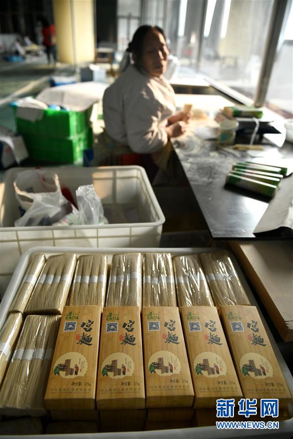11月23日,在石家莊市藁城區(qū)耿家莊村某宮面生產(chǎn)廠(chǎng),工人在分裝宮面。