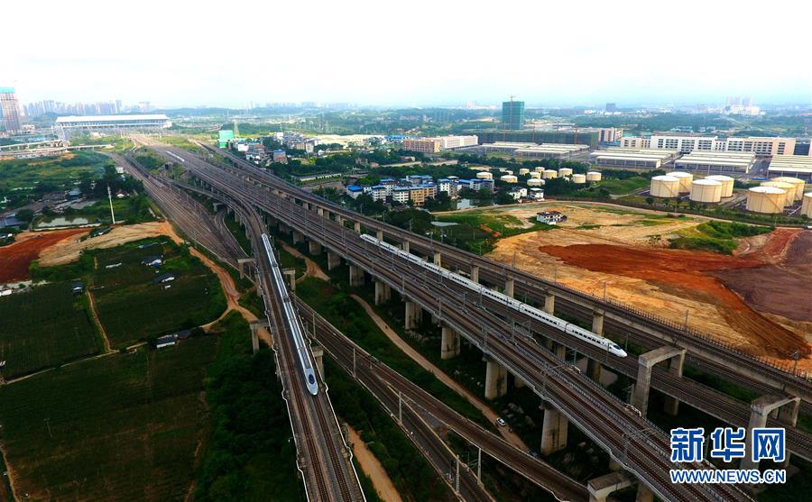 一列動(dòng)車在南寧市區(qū)行駛(9月4日無人機(jī)拍攝)。 廣西壯族自治區(qū)成立60年來,鐵路建設(shè)發(fā)生翻天覆地的變化。來自中國鐵路南寧局集團(tuán)有限公司的數(shù)據(jù)顯示,1958年廣西鐵路總里程為1346.3公里,如今廣西鐵路總里程達(dá)5191公里。廣西與周邊相鄰省份間實(shí)現(xiàn)動(dòng)車“公交化”開行。此外,北部灣港—重慶班列、東盟海產(chǎn)品冷鏈班列、“百色一號(hào)”果蔬專列等的開通和運(yùn)營(yíng),強(qiáng)化了鐵路供給的針對(duì)性和有效性。鐵路成為助推廣西經(jīng)濟(jì)社會(huì)快速發(fā)展的“大動(dòng)脈”。 新華社記者陸波岸攝