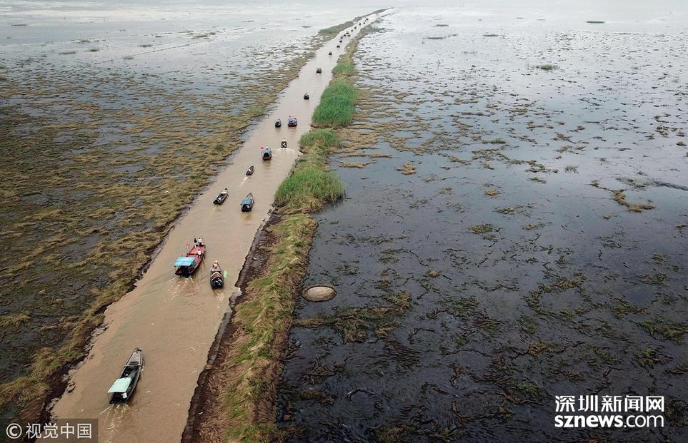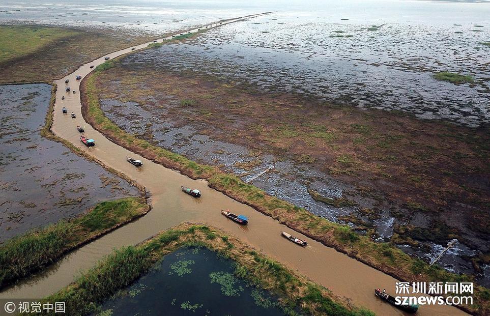 6月20日,鄱陽(yáng)湖江西省鄱陽(yáng)縣水域,漁船下湖捕撈作業(yè)。為期3個(gè)月的中國(guó)最大淡水湖鄱陽(yáng)湖春季禁漁期于當(dāng)日12時(shí)結(jié)束。當(dāng)日,第二屆鄱陽(yáng)湖國(guó)家濕地公園開(kāi)漁節(jié)在此間舉行,吸引各地游客慕名前來(lái)。中新社記者 姜濤 攝