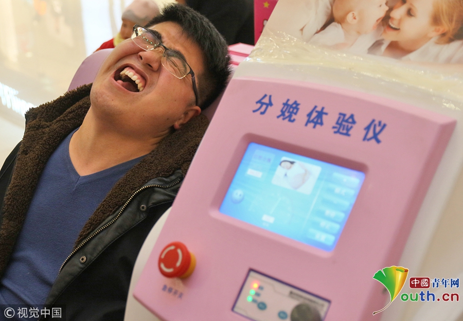2018年3月8日,“三八”婦女節(jié),山東煙臺(tái)大悅城提供了一臺(tái)“分娩體驗(yàn)儀”供男士免費(fèi)體驗(yàn),讓他們體驗(yàn)女性分娩時(shí)的陣痛,了解女性分娩時(shí)的忍耐與艱辛。